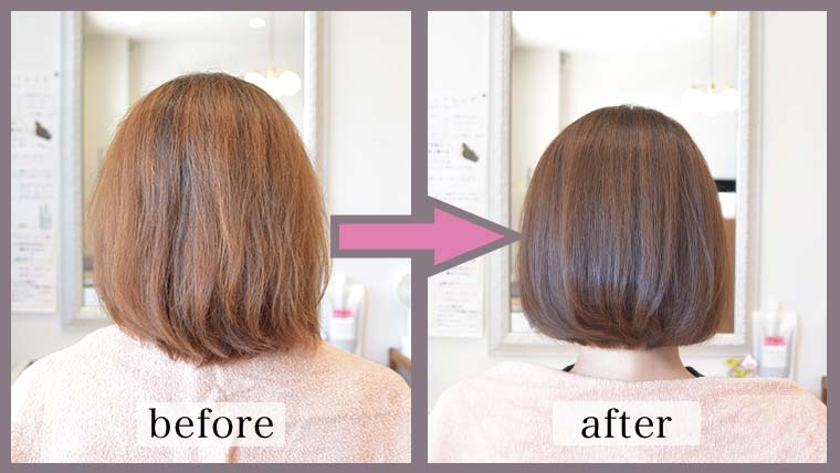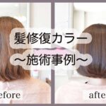 髪修復カラーでは、キューティクルの乱れを整えるので、一時的ではありますが、うねりも出にくくなりツヤ感アップです!